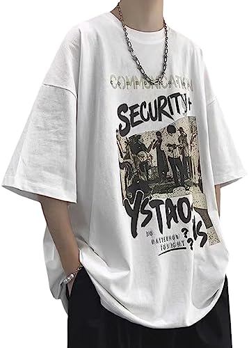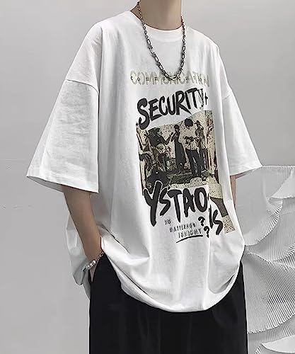 [Luxe Relax] メンズ tシャツ 半袖 ロゴ 綿100% バンドT レトロ 夏 ゆったり 無地 綿 シンプル おしゃれ 大きいサイズ 夏服 ルーズtシャツ ユッタリ ウェア 大きい サイズ 綿100 アメカジ カジュアル ファッション 彼シャツ 部屋着 スポーツ 運動 ランニング 5分袖 五分袖 uネック 英字 プリント デザイン しゃつ トップス ホワイト 3S-L04-WHL