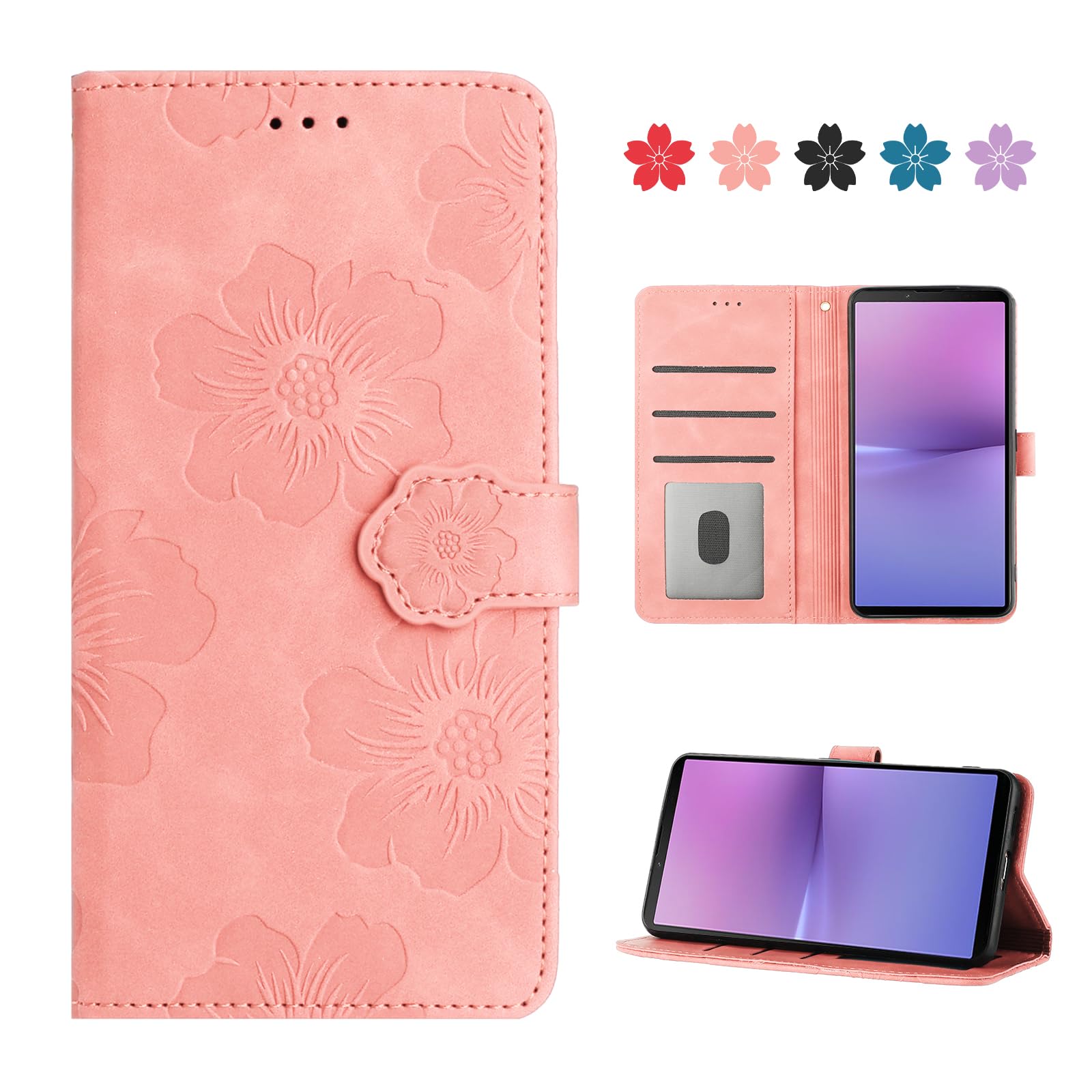 CASAFUNY 向けの Xperia 10 V ケース 手帳型 人気 適用 エクスペリア10V ケース 手帳型 おしゃれ かわいい 美しい桜の柄 カバー お洒落 耐衝撃 本革レザー SO-52D SOG11 スマホケース 財布型 カード収納 マグネット式 スタンド機能 軽量 6.1インチ(ピンク)