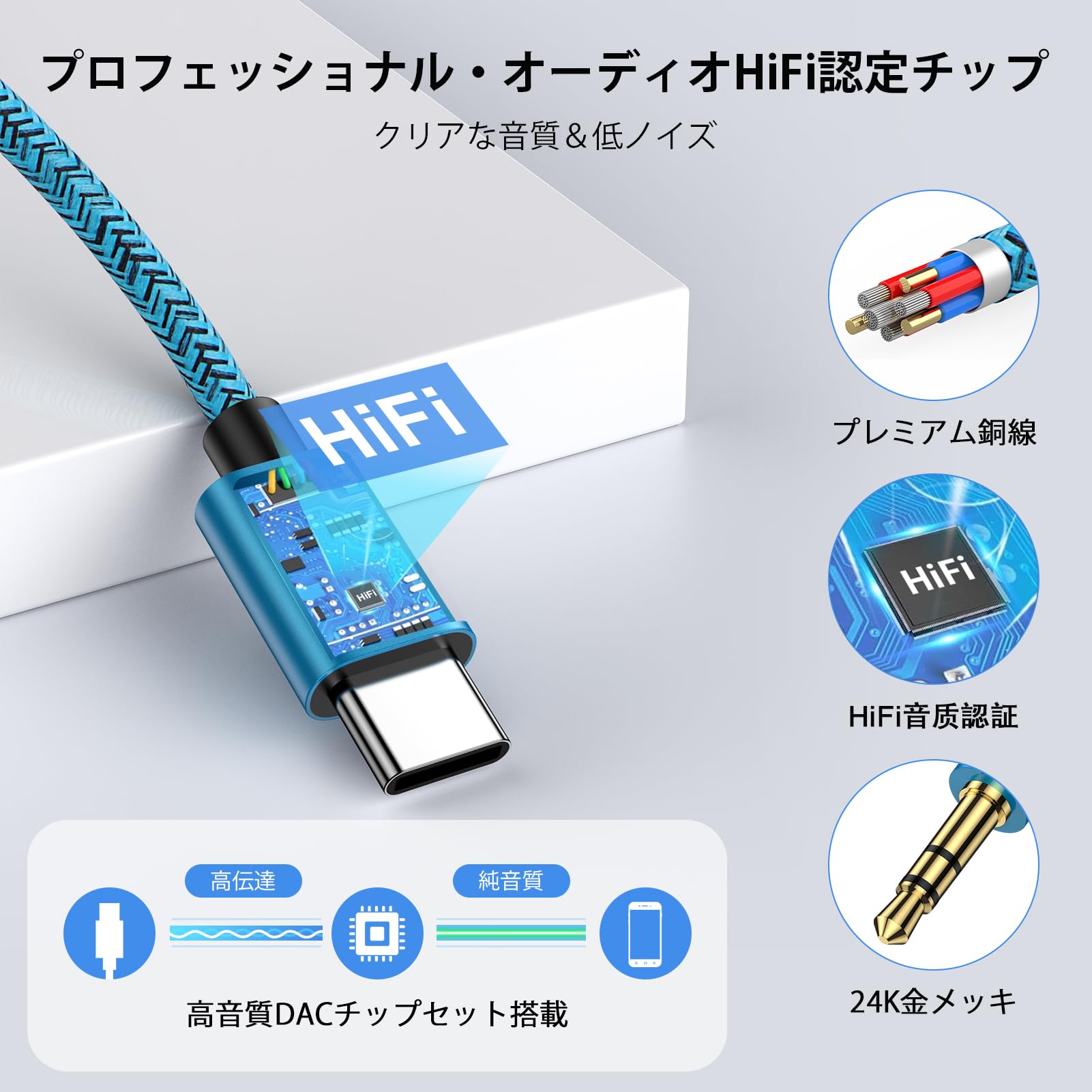 耐久性素材:ステレオケーブルが高品質のナイロン編み材質を使用し、10000以上の折り曲げテストに合格します。タイプc ケーブルの断線、コネクタ接続不良、利用中の発熱などの問題に工夫し、お客様のご利用中には断線への心配がないです。