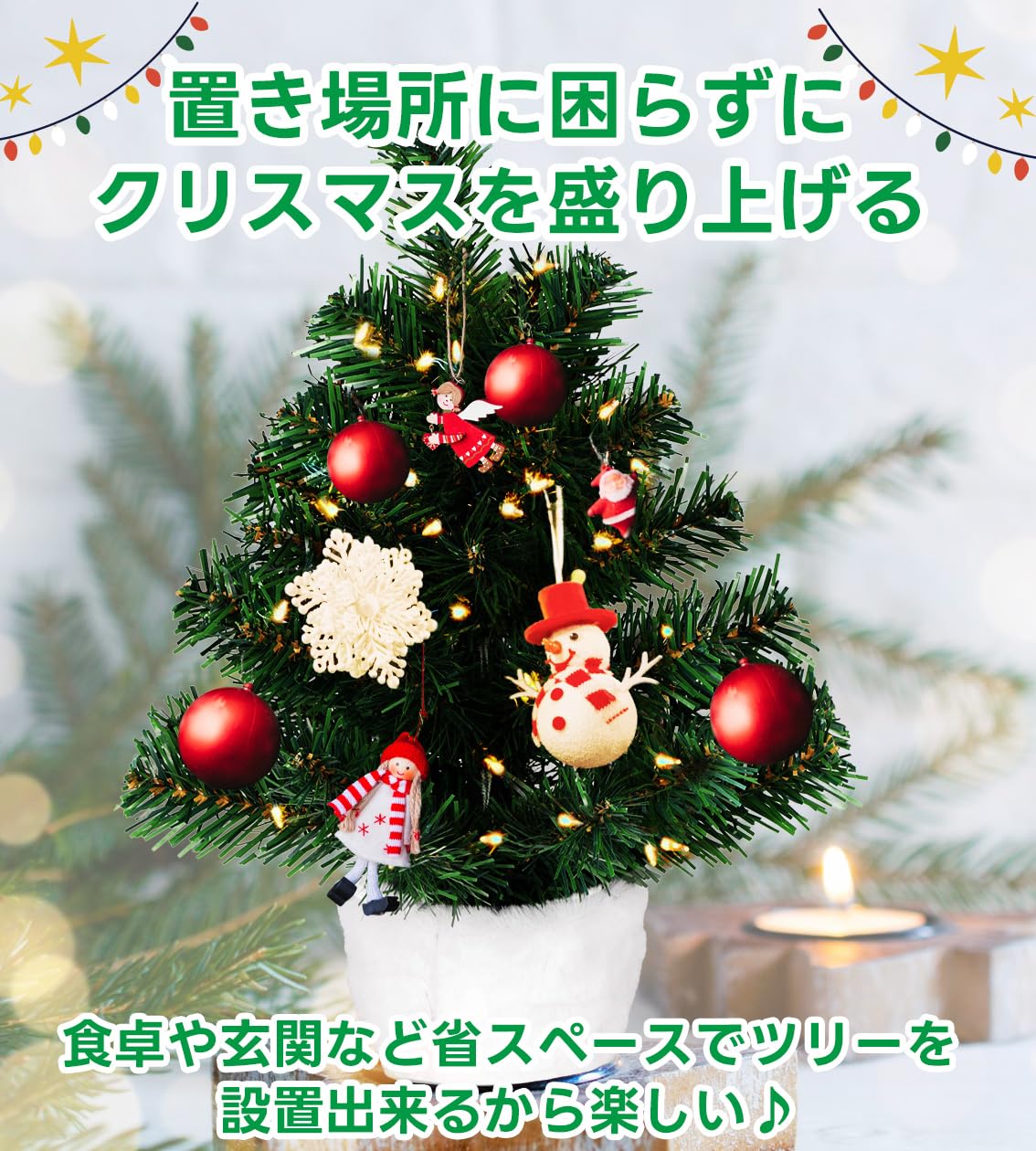 【卓上サイズのかわいいLEDライト付きミニツリー】置く場所を選ばない、可愛らしい卓上サイズのクリスマスツリーです。玄関やダイニングテーブル、職場や子供部屋などちょっとしたスペースに飾ることができます