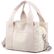 [zhongningyifeng] レディース キャンバス ハンドバッグ ショルダーバッグ スモール カジュアル マルチポケット トップハンドル トート クロスボディ (beige)