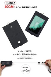 【リール付】リールを伸ばして(最大で40CM)センサーにタッチ、使い終わって手を離すと自動的にリールがもどるので首から下げたままセキュリティカードなどをタッチすることが可能です。