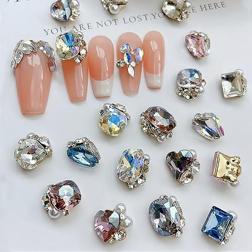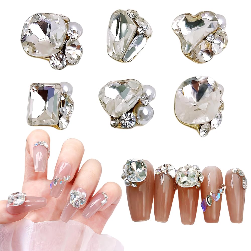 Chisafly ネイルストーン 大粒 ネイルパーツ ストーン クリスタル 宝石 キラキラ 立体 ハート スクエア 四角 レクタングル 6点セット (ホワイト)