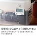 保管ボックスの外から確認がしやすいアーム型の吸盤付き。卓上スタンドも付いています。
