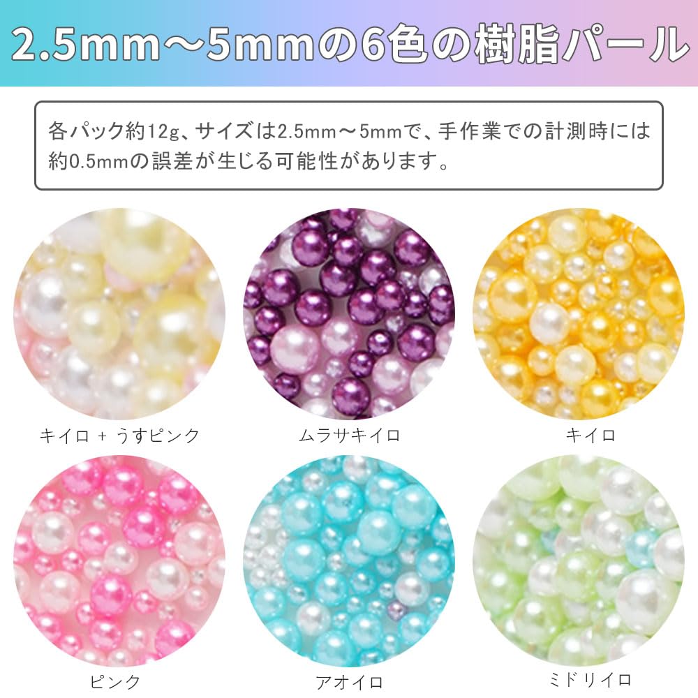 LIKENNY パール レジン封入 樹脂 デコきゅう 穴無しアクセサリーパーツ ネイルアート 手芸用品 DIY こんごうすんぽう ビーズアクセサリーパーツ レインボーパール 6色セット