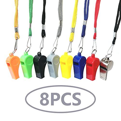 ホイッスル コーチ審判ホ 8個入り(8色) 笛 超軽量 防災 救援 緊急ホイッスル ジム キャンプ ハイキング レフェリー小物子供用 教師用 学校 キャンプ コンペティション用品 バスケットボール ホッケーに サッカー 緊急訓練 マルチカラー