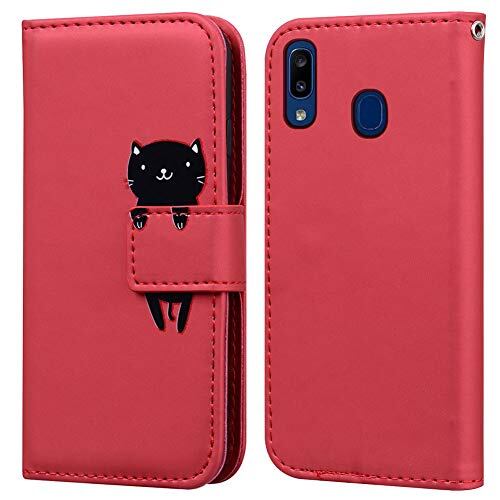 Ailisi 対応 Samsung Galaxy A30 ケース 手帳型 サムスン ギャラクシーA30 SCV43 au カバー 女性 人気PUレザー財布型 可愛いカバー 黒猫 かわいい 動物 耐衝撃保護ケース スタンド機能 カード収納 スマホケース (赤/猫)