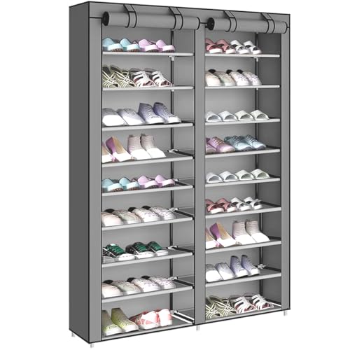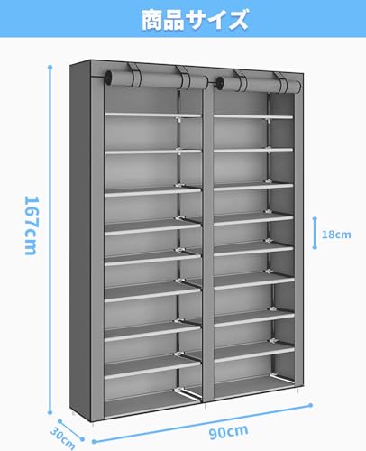 AZAKBL シューズラック 36足 2行 9層 組み立て式 大容量 下駄箱 スリム 玄関収納 おしゃれ 靴入れ 靴棚 不織布カバー付き 省スペース 防水 防塵 防汚 幅約90×奥行30×高さ167cm