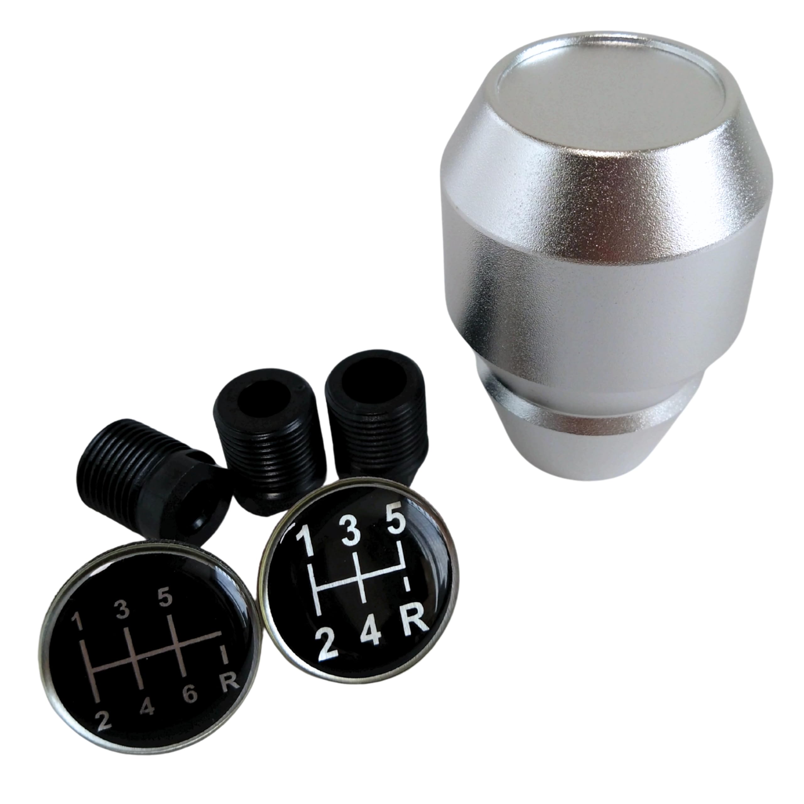 アルミ削り出しならではの質感と、重厚で存在感のあるフォルムの樽型デザインシフトノブ!5速/6速MTシフトパターン付属。
