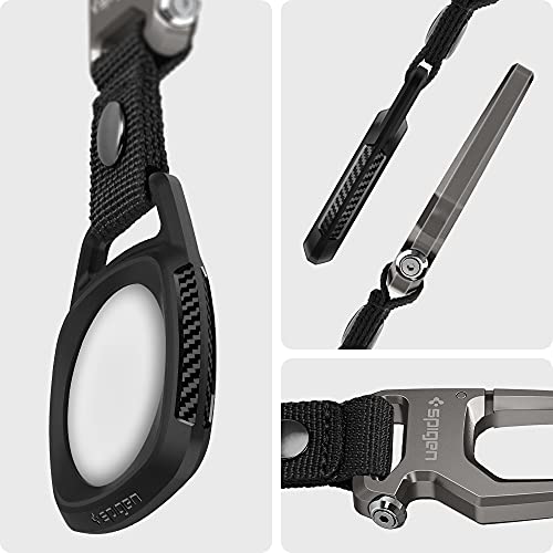 Spigen AirTag ケース キーホルダー カラビナ付き カバー スリム 軽量 紛失防止 耐衝撃 落下 衝撃 吸収 エアタグケース ラギッド・アーマー AMP01565 (ブラック)