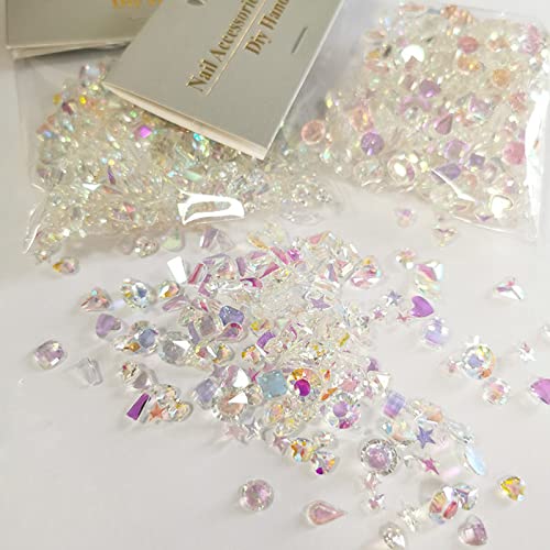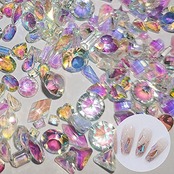 サムコス ラインストーン ネイルパーツ 約120粒セット 小さめ オーロラ幻彩 キラキラ 立体 平底 異形 ネイルストーン DIY カラー 混合色 ネイルアート デコ用