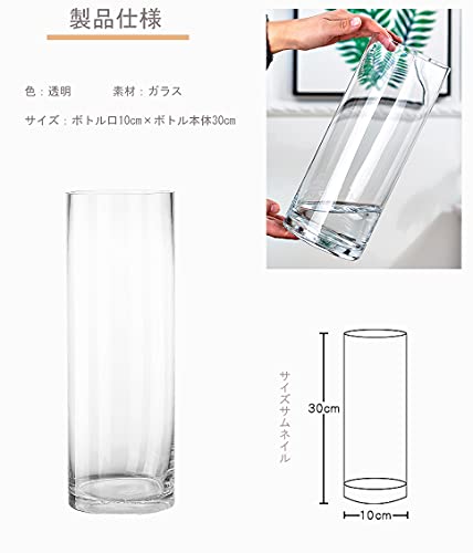 円柱 花瓶 大 フラワーベース ガラス 一輪挿し北欧 透明 花器 シンプル クリア 北欧 透明 大きな インテリア 室内 大きい 飾り (直径10cm 高さ30cm)