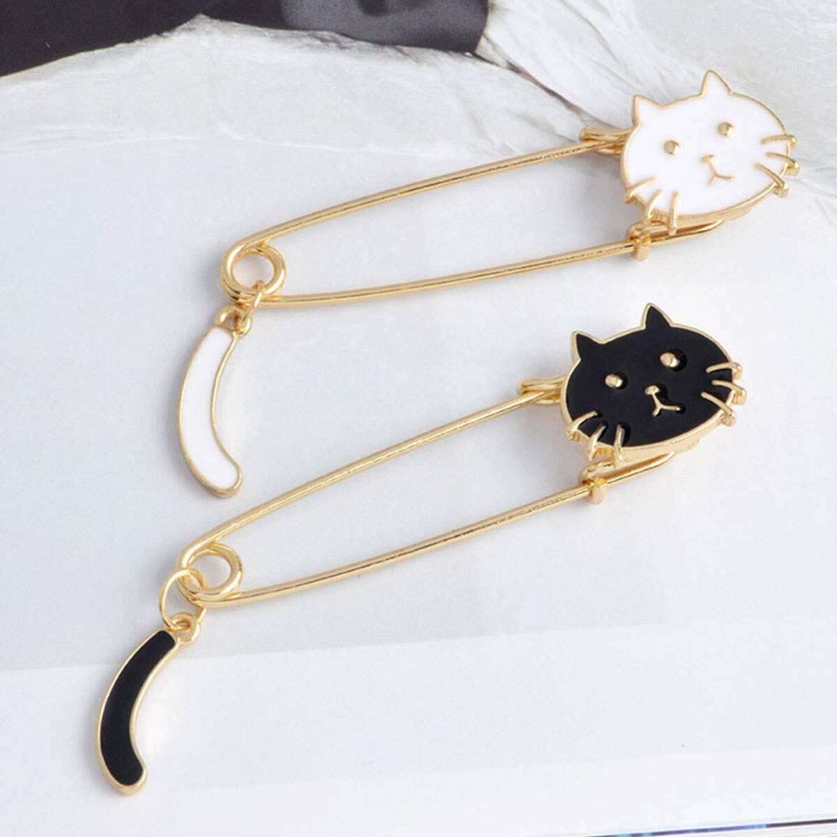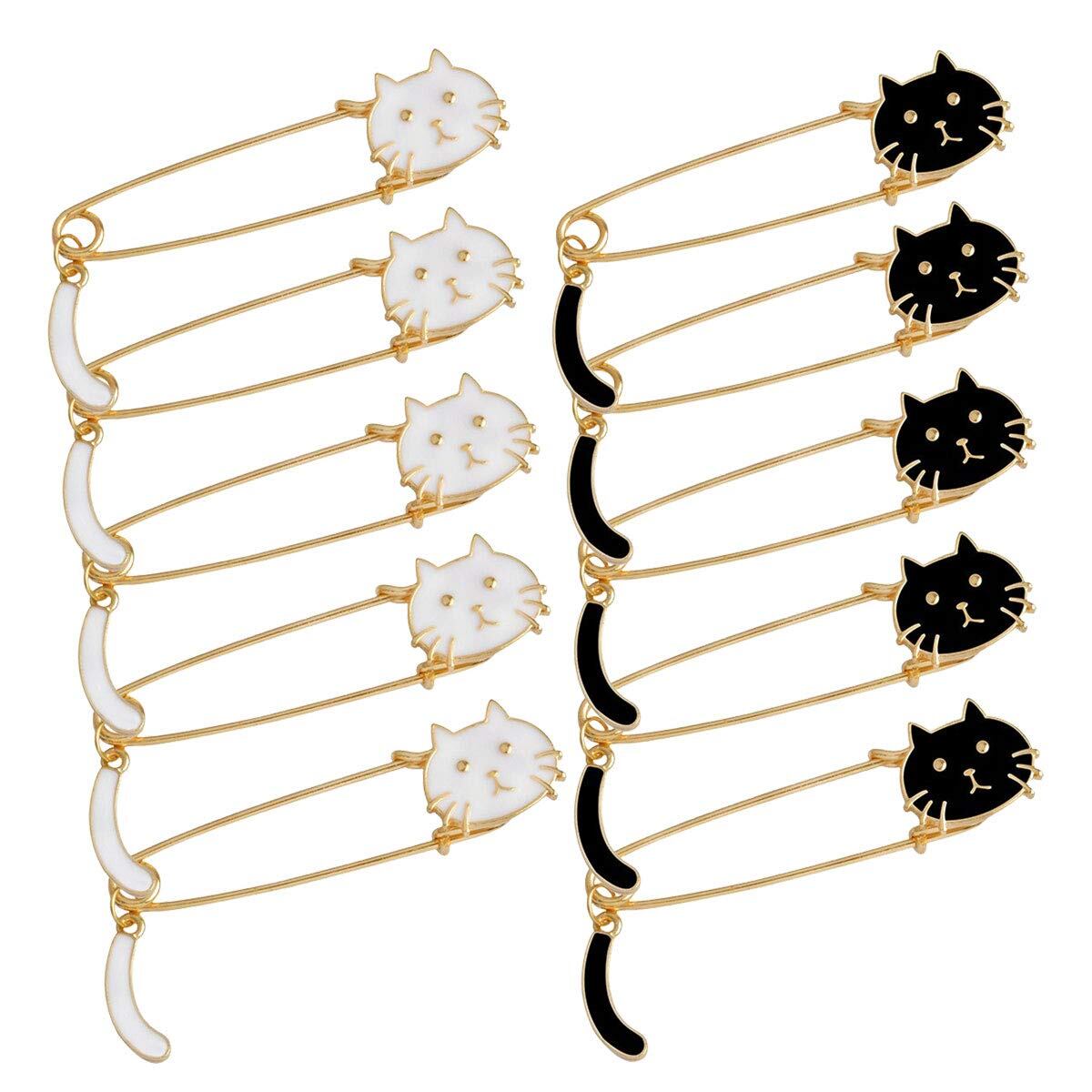 【 白色5個&黒色5個セット 】おすまし顔がとっても愛らしい猫ちゃんのピンブローチです。モノトーンカラーの白、黒のセットで、どんなスタイルにもよく映えます。