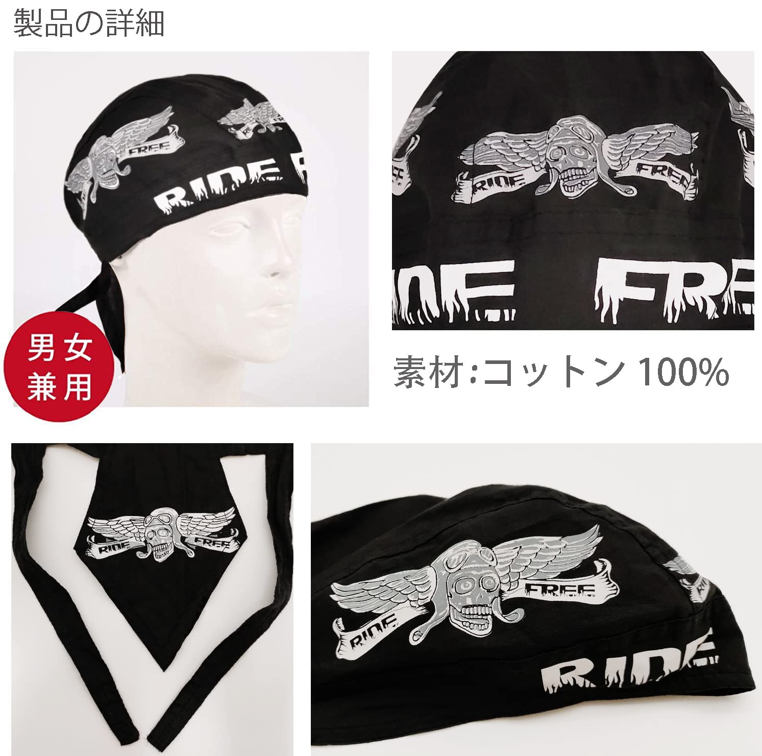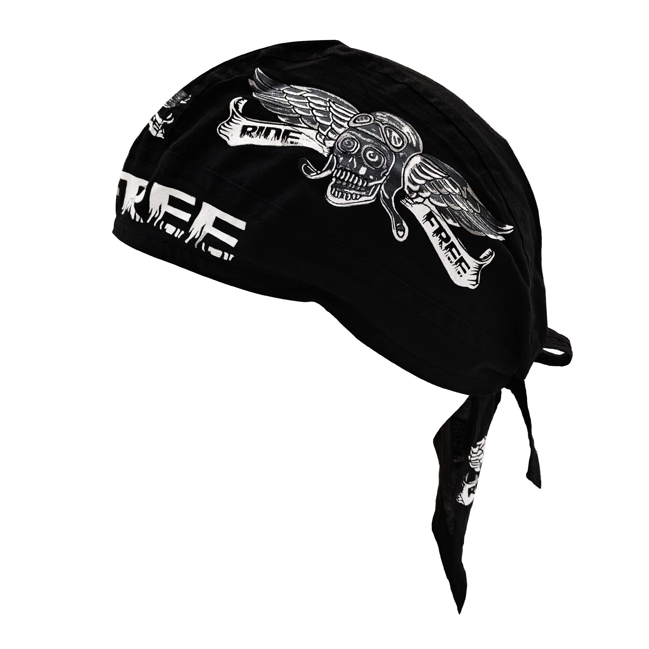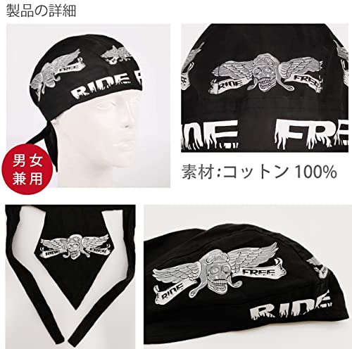 [Trifong] バンダナキャップ 黒 バンダナ 帽子 スカル 綿 ドゥーラグ 海賊 ペイズリー コットン 速乾 吸汗 汗止め 通気 自転車 インナーキャップ ヘルメット 熱中対策 ゆるい帽子 サイクリング ロードバイク 夏 UVカット ばんだな メンズ RIDE FREE
