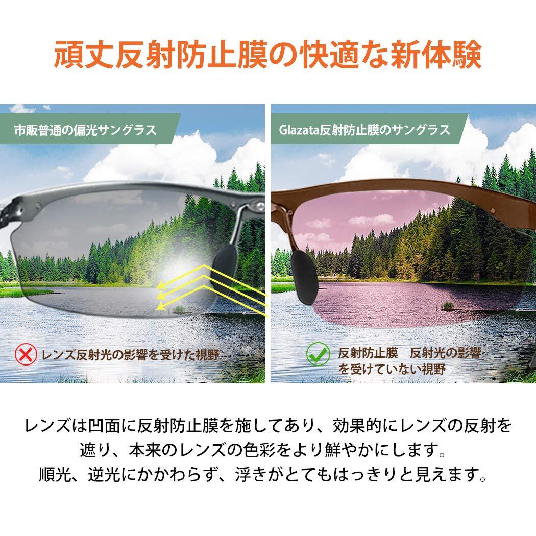 [Glazata] 偏光スポーツサングラス 偏光グラス ・超軽量メタル UV400 紫外線カット ドライブ/野球/自転車/夜釣り/ランニング/ゴルフ/運転 「釣り用」