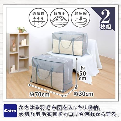 アストロ 羽毛布団収納袋 グレー 2枚組 シングル ダブル兼用 通気性の良い不織布製 布団収納 布団袋 収納バッグ 収納ケース 保管袋 ホコリ除け 持ち手付き 透明窓付き 圧縮袋 コンパクト 167-26