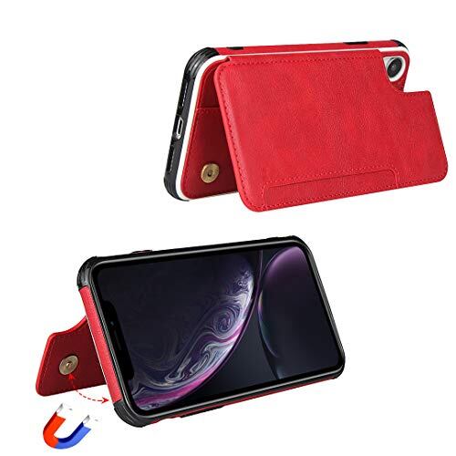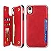 Pelanty for iPhone XR 手帳型ケース for iPhoneXr ケース縄掛け 背面カバー PUレザー IC カード収納 軽量 スタンド機能 ボタン磁気 多機能 アイフォンXr スマホケース 耐衝撃 滑り防止 全面保護 ストラップ 携帯カバー -レッド