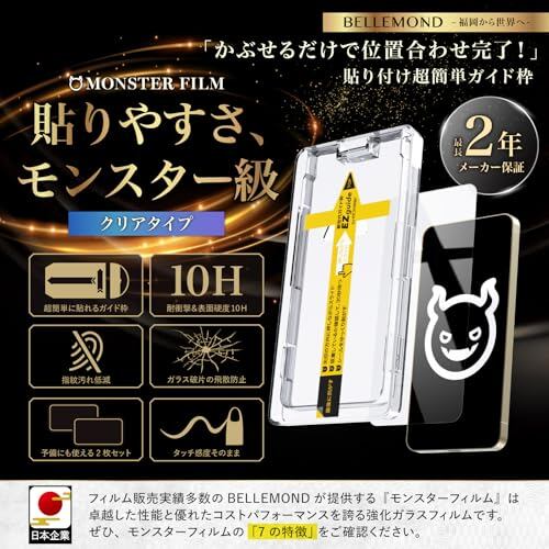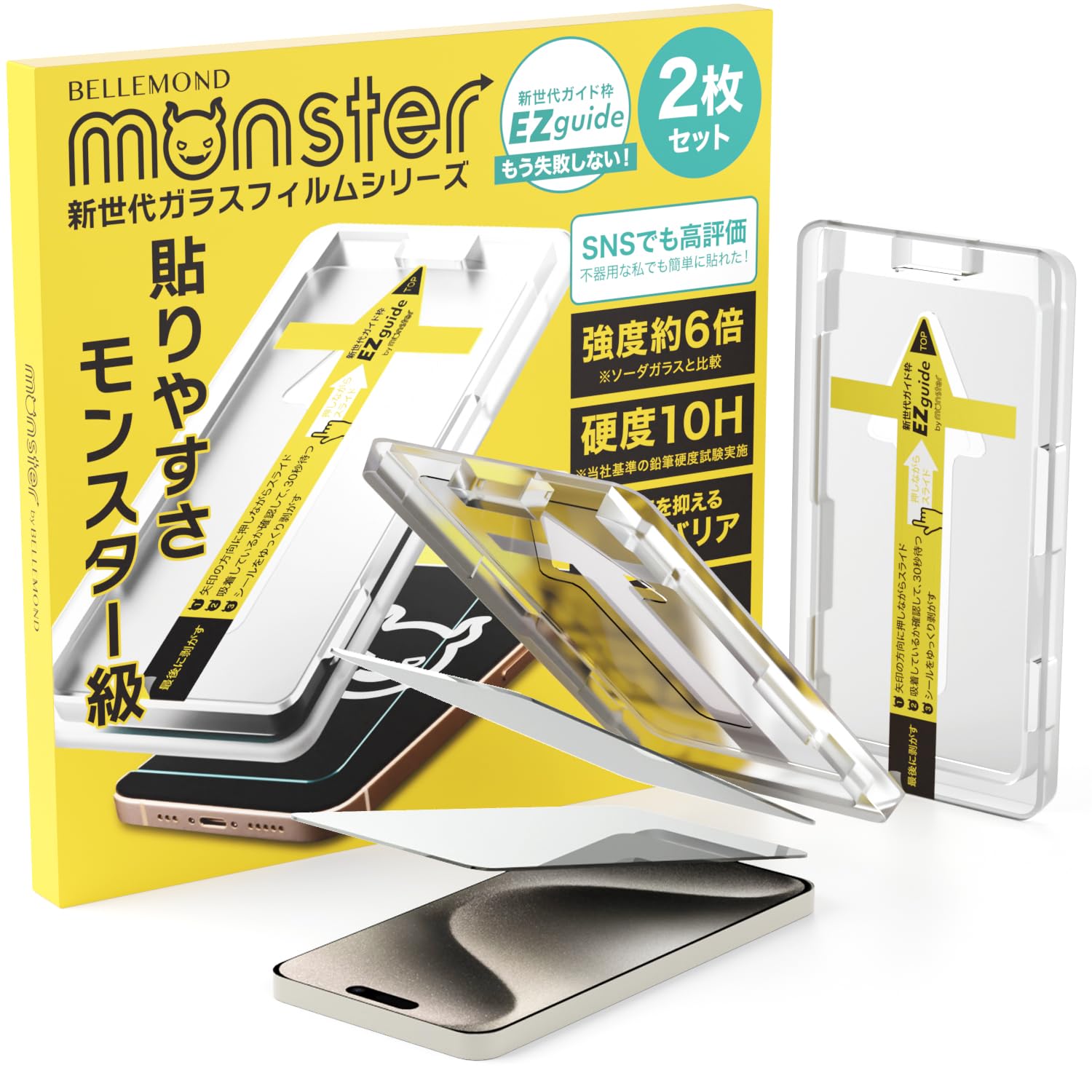 モンスターフィルム iPhone 15 Pro 用 クリア ガラスフィルム | 2枚セット ガイド枠付き | アイフォン 15 Pro 用 保護フィルム B0991