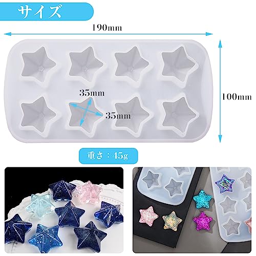 仕様:シリコンモールドレジン星形 素材:シリコーン カラー:半透明。サイズ:長い190mm、幅100mm、重さ45g。サイズの詳細は寸法図をご覧ください。