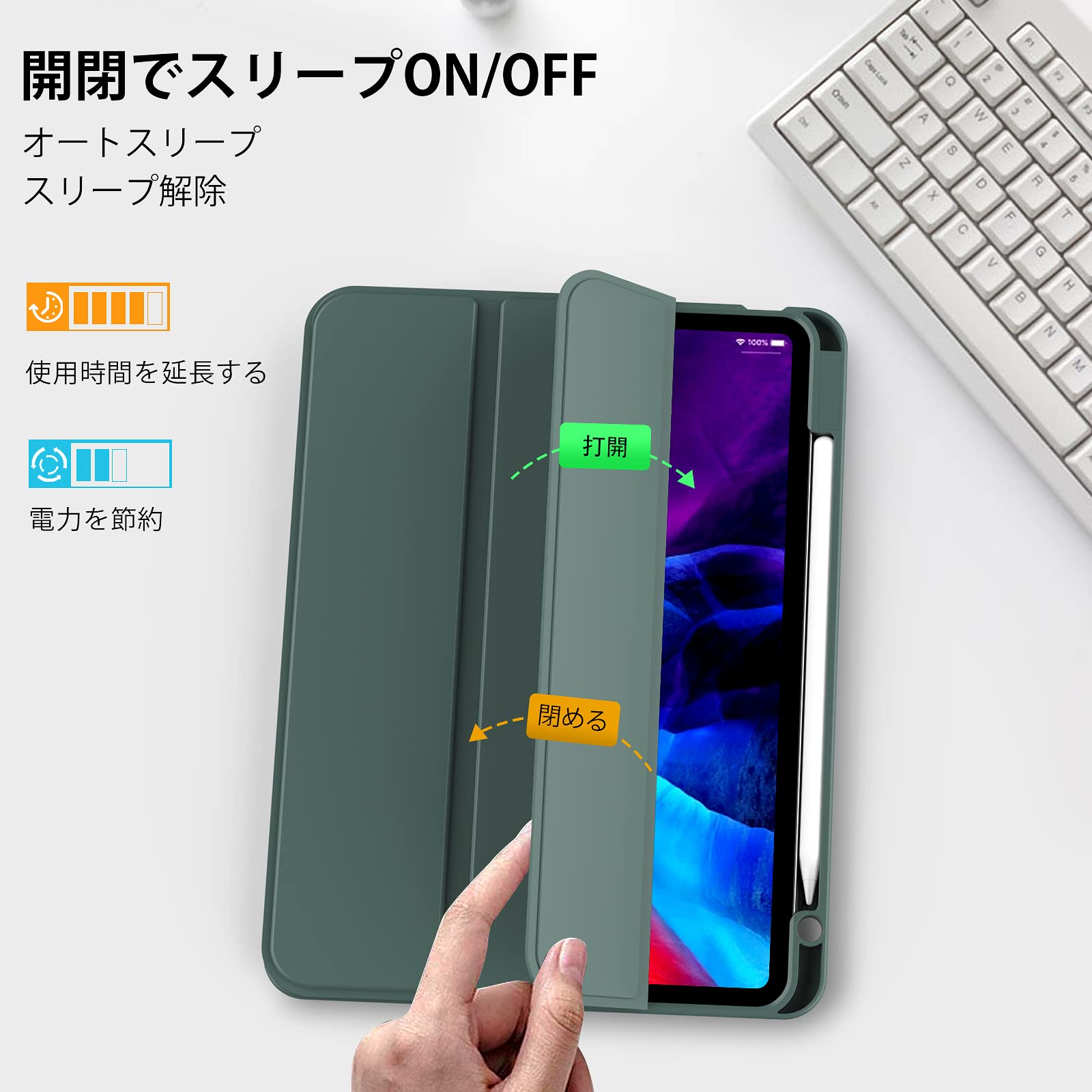 【自動スリープ機能】 iPad Pro 11 ケースは磁気デザインを採用しており、便利にカバーを開閉することができ、そして自動的にスリープします。しっかりフィットして、指紋や汚れ、スクラッチを防止し、便利に使用可能です。