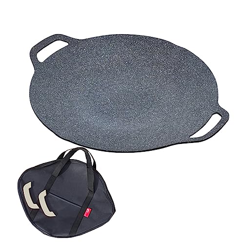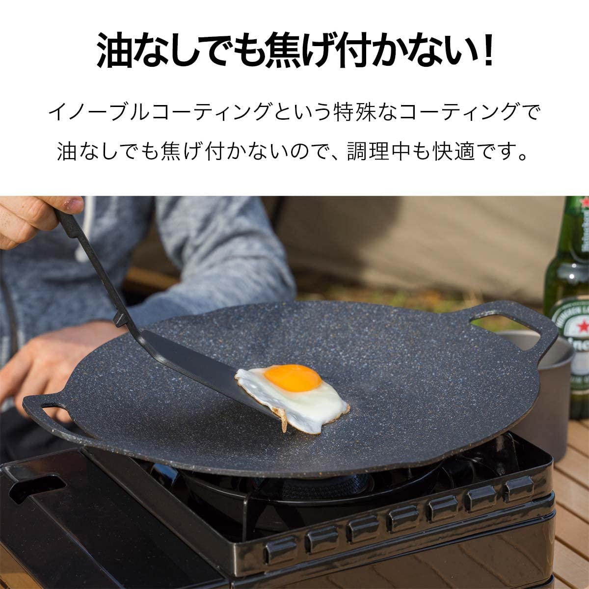 FIELDOOR ラウンドグリドルパン グリルパン イノーブルコーティング シーズニング不要 お手入れカンタン 焚き火 ガス IH 対応 注ぎ口 収納バッグ付属 キャンプ BBQ アウトドア [直径33cm] [ブラック]