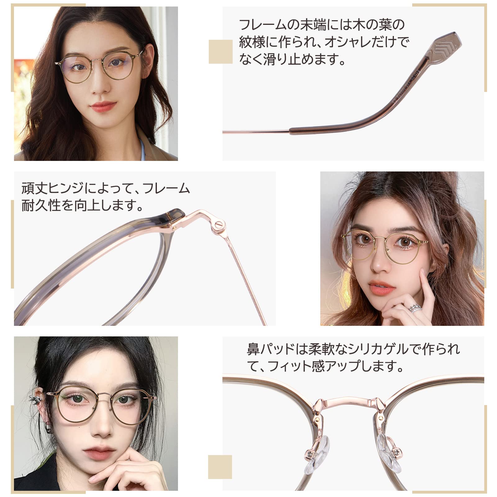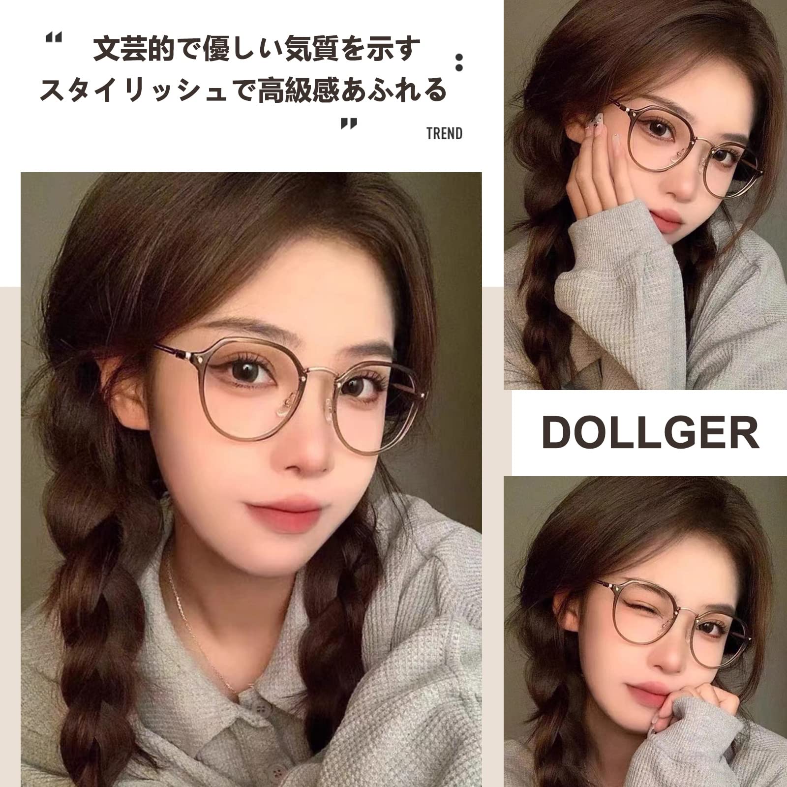 伊達メガネ おしゃれ:Dollger伊達メガネは不規則な丸型デザインを採用して、顔の形をよく修飾して小顔効果あり、さまざまな顔幅に適するだてめがねになります。メガネフレームには冷たい色とローズゴールド色の組み合わせで、肌を裏打ちして明るくして白く見えます。ファッションセンスを明らかにし、ファッションアイテムとして欠かせないおしゃれな丸メガネです。