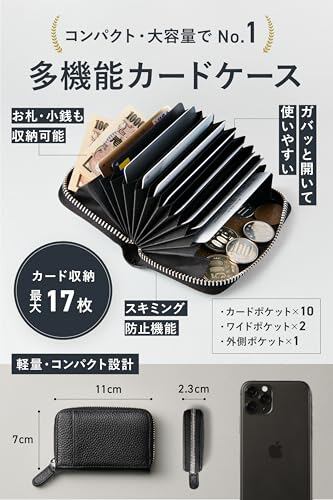 【大容量収納】カード最大17枚収納可能。ありとあらゆる場所に散りばめられたカードを一つに集約。取り出しやすさと見やすさを優先し、じゃばら式を採用。