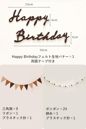 harukita 誕生日 飾り付け バースデー 飾り 写真背景 シンプル 装飾 フェルト生地 壁掛け 女の子 男の子 大人 三角旗ガーランド フグボールガーランド happy birthday