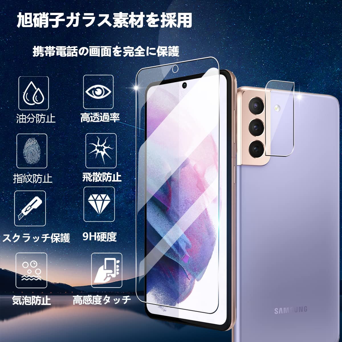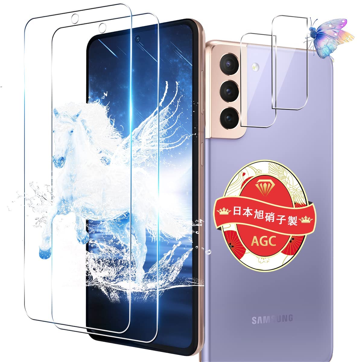 対応 Galaxy S21 5G ガラスフィルム 2+2枚セット 指紋認証対応 用 Galaxy S21 5G SCG09 SC-51B フィルム 用 ギャラクシー S21 5G カメラ保護フィルム 日本製 旭硝子 9H硬度 全面保護 用 ギャラクシー S21 5G 強化ガラス 保護フィルム ケース 耐衝撃 高透過率 撥水撥油 指紋防止 飛散防止 自動吸着 気泡ゼロ 貼り付け簡単