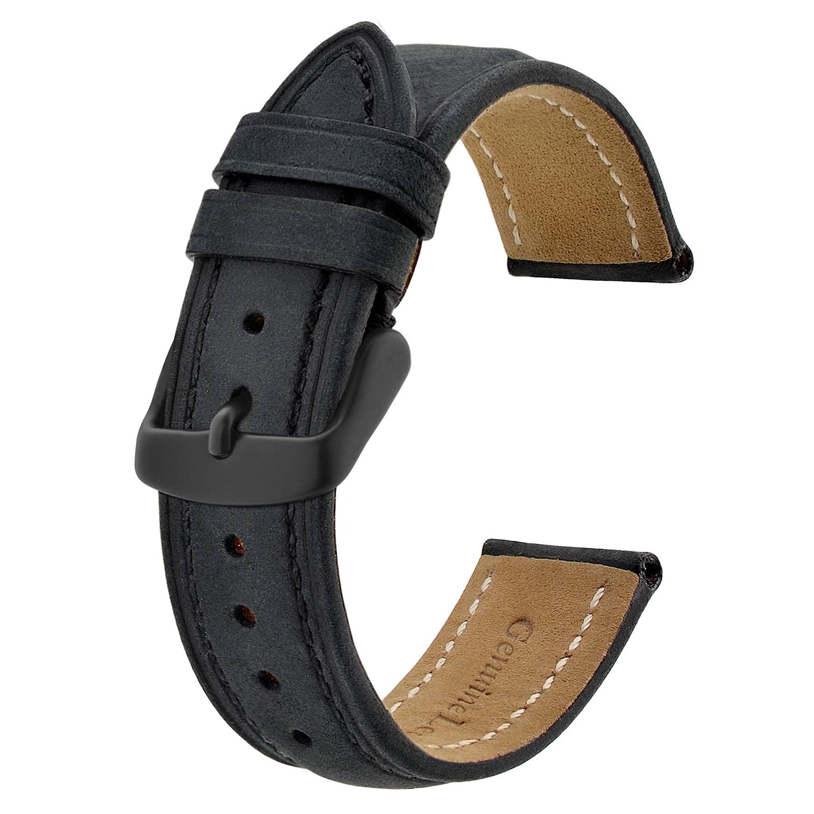 [BISONSTRAP] 腕時計バンド 腕時計ベルト 替えバンド スエード本革 ブラック尾錠 バネ棒付 メンズ レディース 14mm ブラック