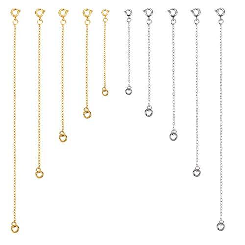 LIKENNY 延長 チェーン ネックレスの長さを調整用 ステンレス製 5cm 7.6cm 10.16cm 12.7cm 15.24cm 10本セット (シルバー&ゴールド )