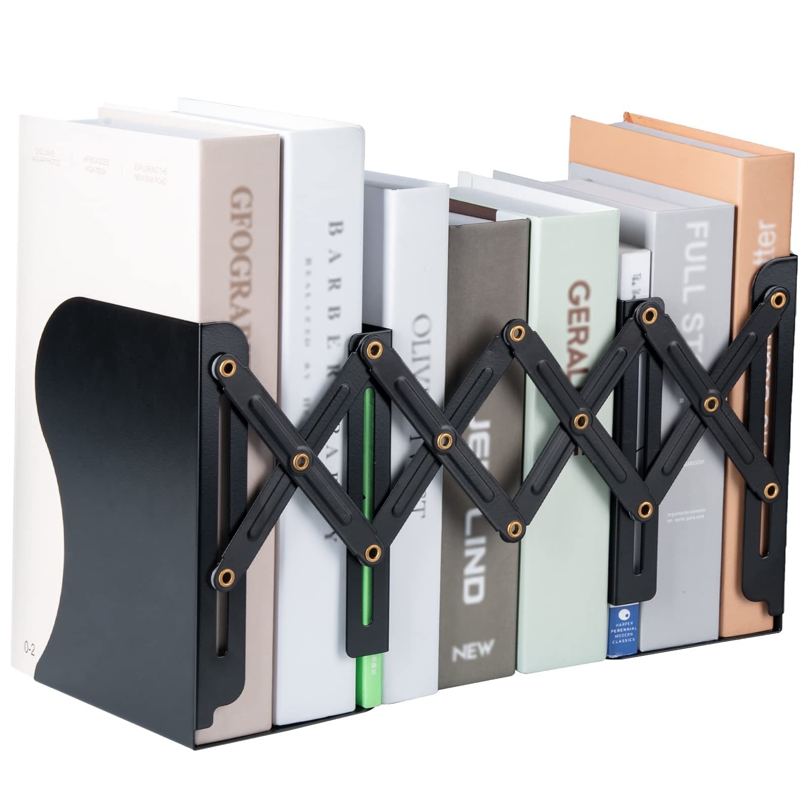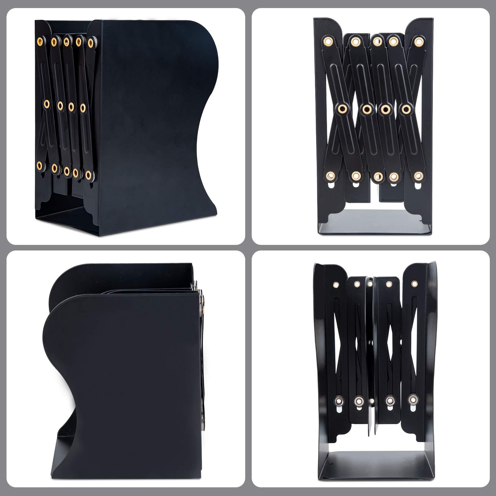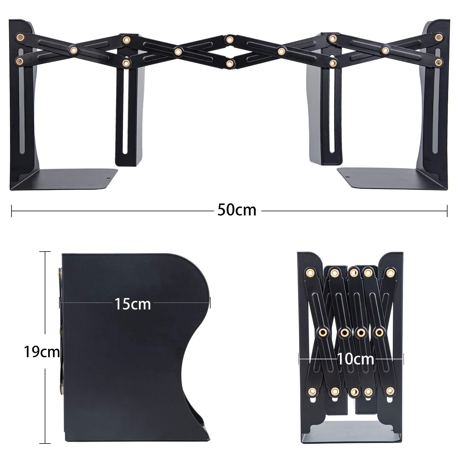 ALIOBC 本立て 伸縮自在 ブックエンド 倒れない 金属製 卓上本棚 仕切りスタンド 雑誌 書類 新聞ファイル ひきこみ式の棚 事務用品 文房具 学習 書斎 子供部屋 オフィス 多機能 おしゃれ ブラック