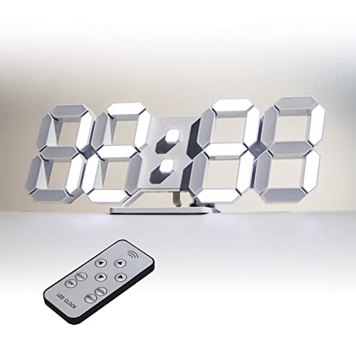 KOSUMOSU デジタル時計 LED 壁掛け 置き時計 明るさ自動感応 3D LED CLOCK 目覚まし時計 10インチリモコン付きナイトランプ年/月/日温度表示白色のキッチン時計(ACアダプター付属無し)ACD-210W