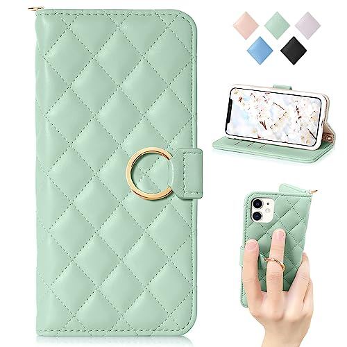 MAGICASE For iPhone 12ケース 手帳型 おしゃれ iPhone12 手帳型 ケース人気 女性 可愛い かわいい レディース チェック柄 刺繍 ストラップ付き アイフォン12 携帯カバー アイフォン12 ケース手帳型 カード収納 アイフォン12 ケース 高級PUレザー 横置き機能落ち着いた色 上質な手触り(iPhone 12/12pro対応6.1 inch)グリーン