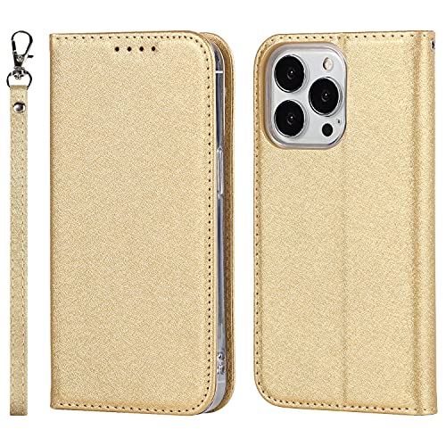 Pelanty for iPhone 14 Pro 6.1'' ケース手帳型 for iPhone14 Pro 財布型カバー case PUレザー 薄型 スマホケース ストラップ付き ベルトなし カード収納 マグネット式 スタンド機能 アイフォン14プロ 携帯カバー 滑り止め 全面保護 耐衝撃 軽量 (ゴールド)