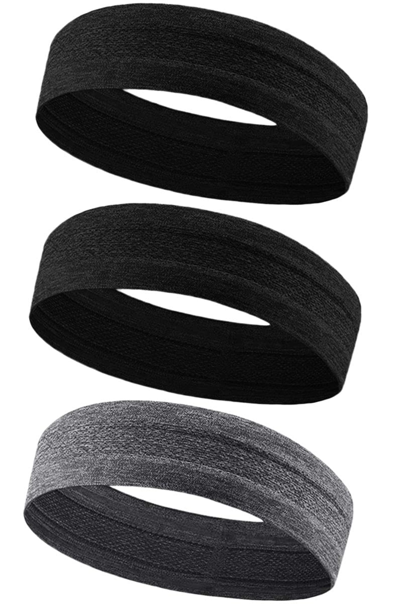 [AOIIWER] ヘッドバンド ヘアバンド 汗止め メンズ レディース スポーツターバン 伸縮性 通気性あり 薄型 軽量 無地 肌触りが柔らかい 洗顔用 髪留めらかい ランニング ダンス ヨガ ジョギング 自転車 男女兼用 3本セット (ブラック+ブラック+ダークグレー)