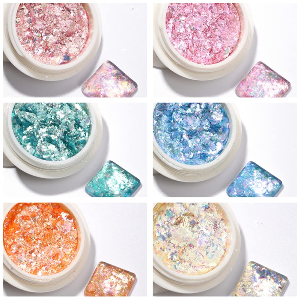 超薄&超輝き ネイルホログラム オーロラレインボーマイカフレーク ネイルホロパーツジェルネイルレジン用 ネイルアートパウダー (6色セット)