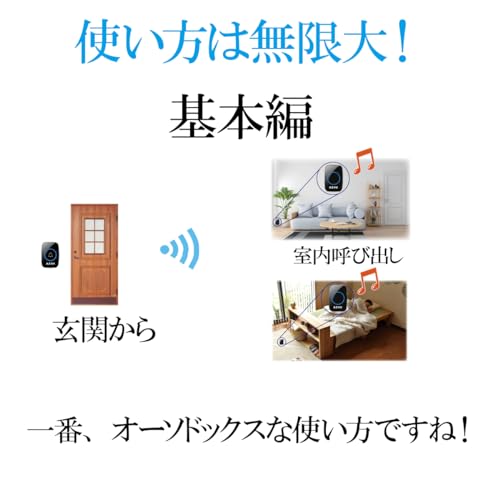 ワイヤレスチャイム: 即日使用可能で配線工事不要な便利なワイヤレスチャイム。コンセント不要で設置場所が自由に選べる