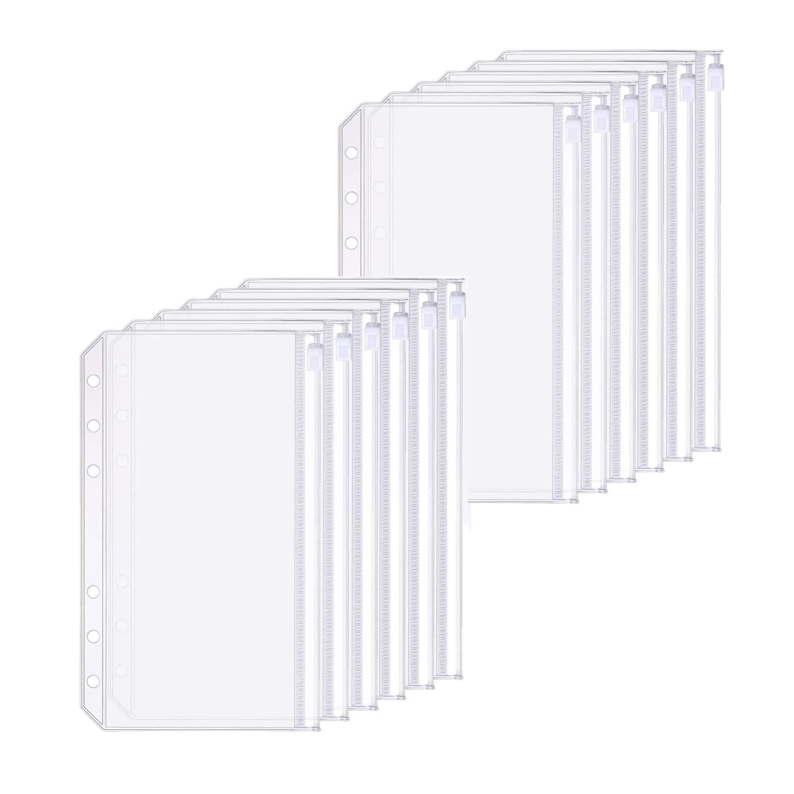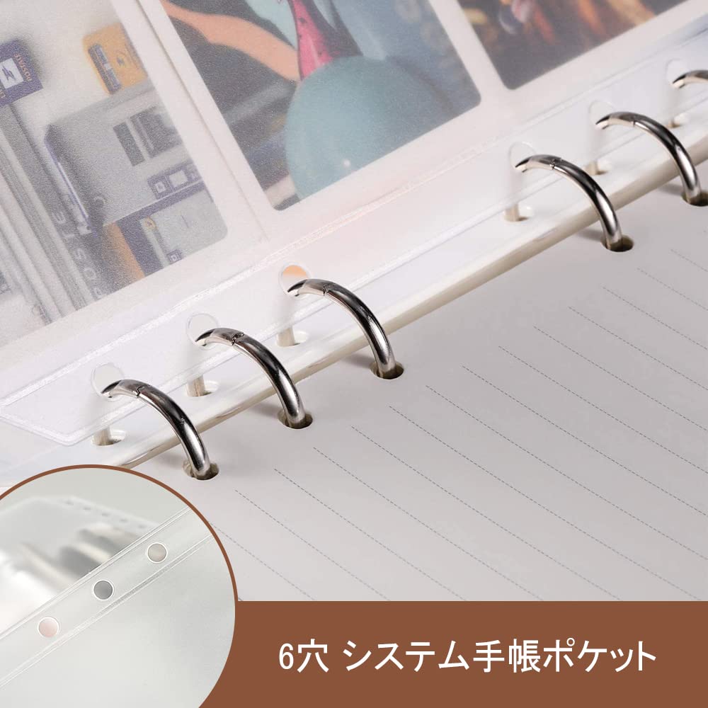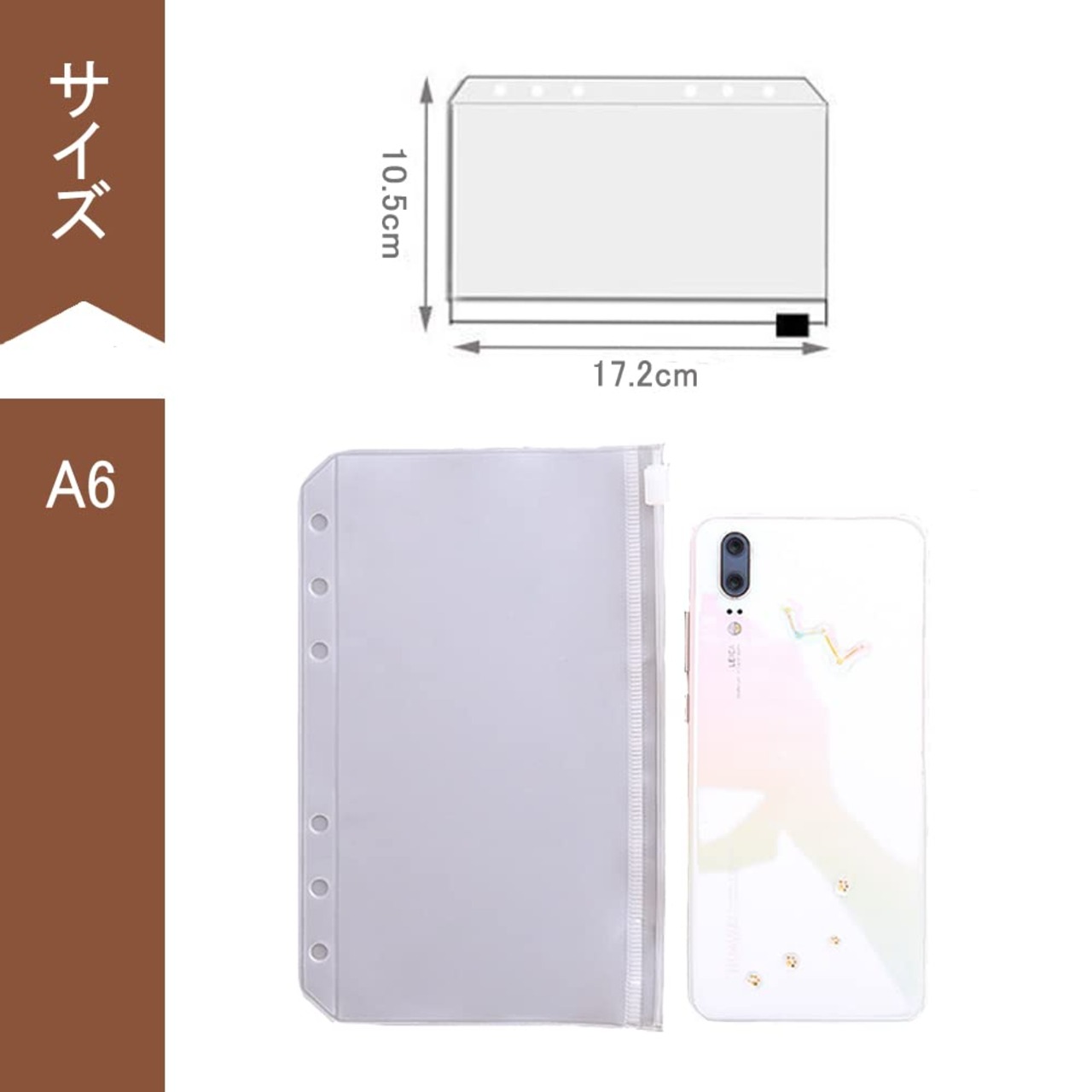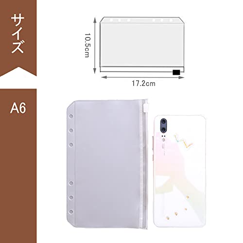 DFsucces バインダーポケット 6穴 システム手帳ポケット ルーズリーフ 書類ファイリングバッグ ファスナーポケット 小物収納 防水 PVC 透明 整理 紛失防止 ポータブル 一目瞭然 12枚 (透明-A6)