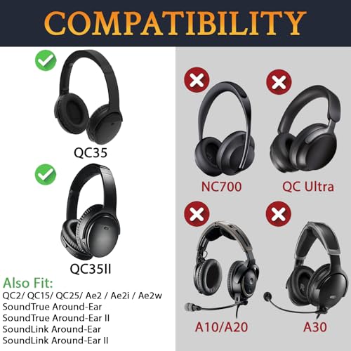 【対応機種】:QC2/ QC15/ QC25/ QC35 I/ QC35 II/ Ae2 / Ae2i / Ae2w/ SoundTrue Around-Ear/ SoundTrue Around-Ear II/ SoundLink Around-Ear/ SoundLink Around-Ear IIヘッドセットに適します。