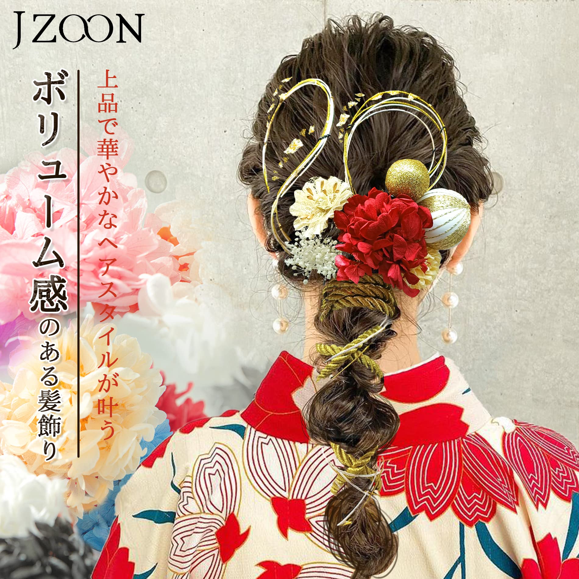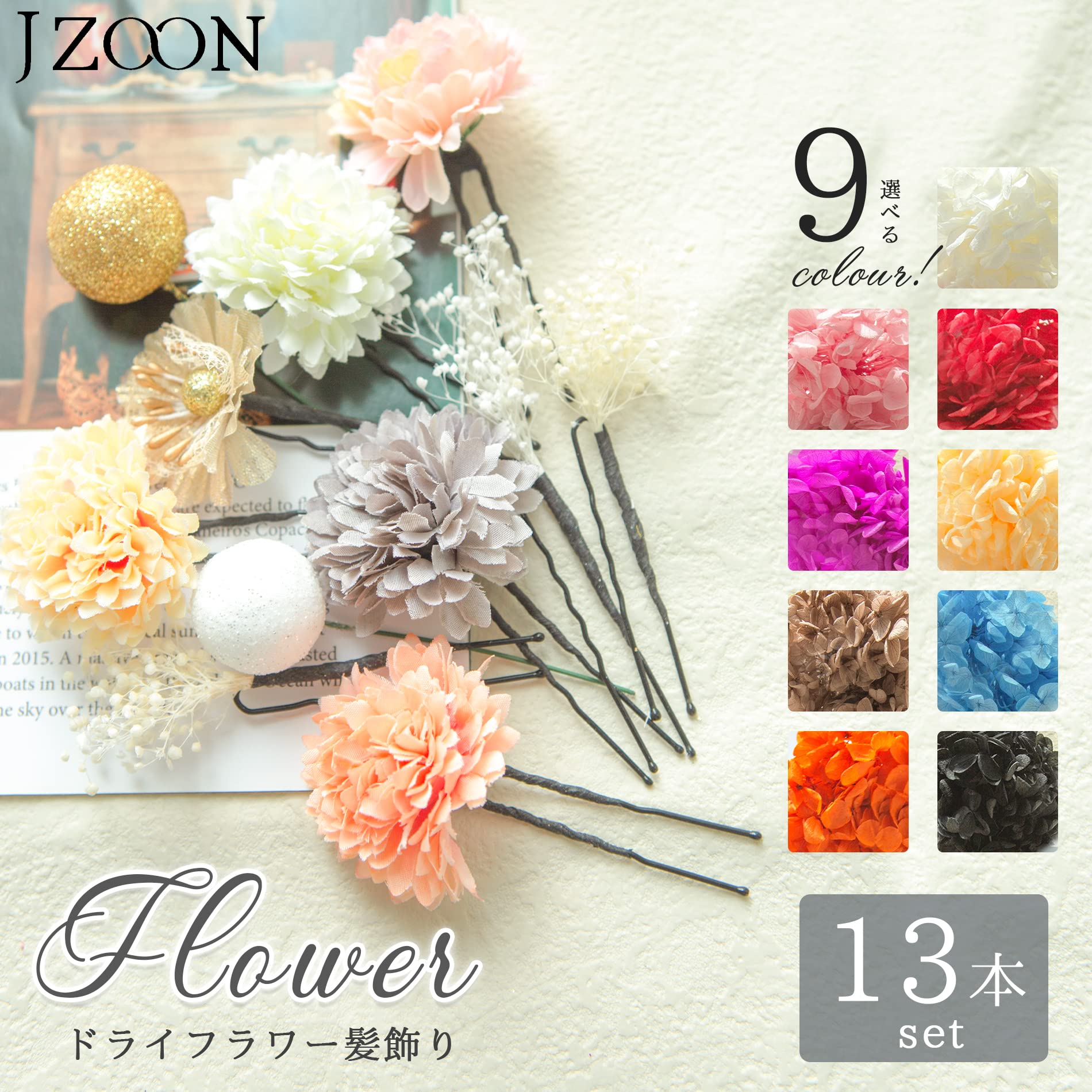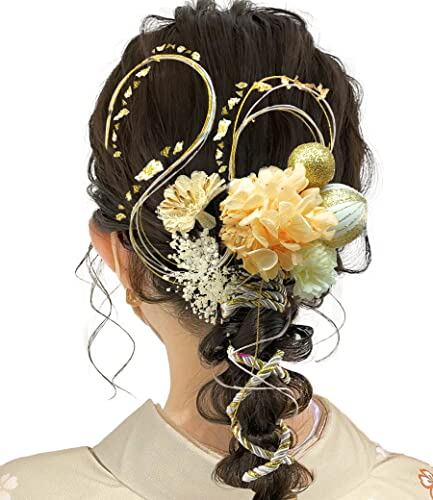 [JZOON] 髪飾り 卒業式 成人式 ヘアアクセサリー アジサイ かすみ草和風 和装 七五三 結婚式 入学式 浴衣 着物 袴 振袖 花火大会 髪飾り 水引き 手作り 13本セット 9色 和装 洋装 パーツ A2618 シャンパン