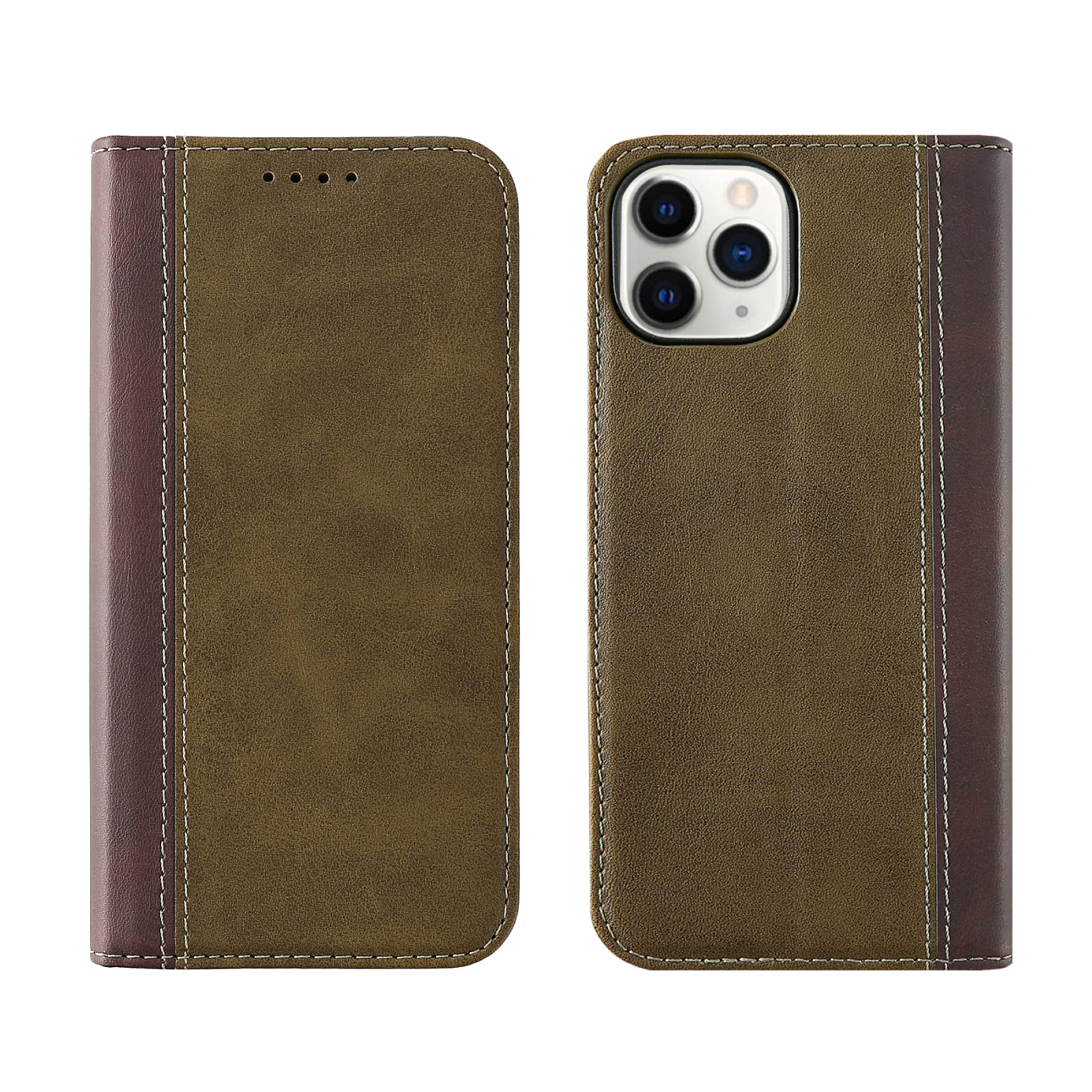 HanaRo iPhone12 用 iPhone12Pro 用 ケース スマホケース 手帳型ケース 手帳型 マグネット カード収納 カバー スタンド 保護 グリーンー×ダークブラウン