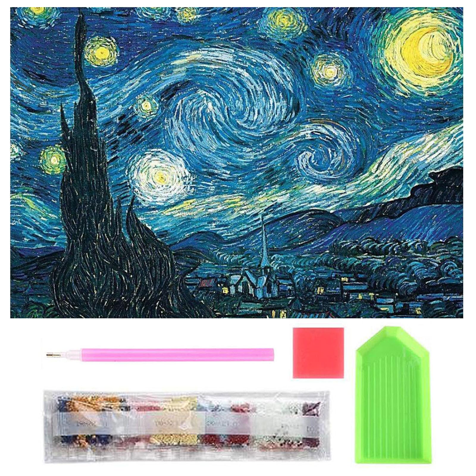サムコス ダイヤモンドアート キット ダイヤモンドの絵画 横版 きれい 全面貼り付け ダイヤモンドアート 塗装 初心者 大人の子供 DIY 手芸キット 芸術品 家の壁の装飾 1セット(星空)