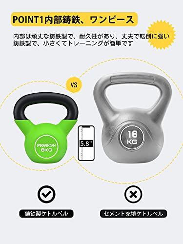 PROIRON ケトルベル ネオプレン 鉄製 6kg 一体型鋳鉄