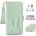 MAGICASE For iPhone 15 ケース 手帳型 可愛い iPhone15 手帳型ケース 人気 どうぶつ 兎 アイフォン 15 ケース 手帳型 カバー スマホケース iPhone 15 ケース 手帳型 女性 かわいい カード収納 スタンド機能付き 全面保護 衝撃吸収 あいほん 15 ケース 手帳型 財布型 マグネット式 着脱しやすい 高級PUレザー グリーン