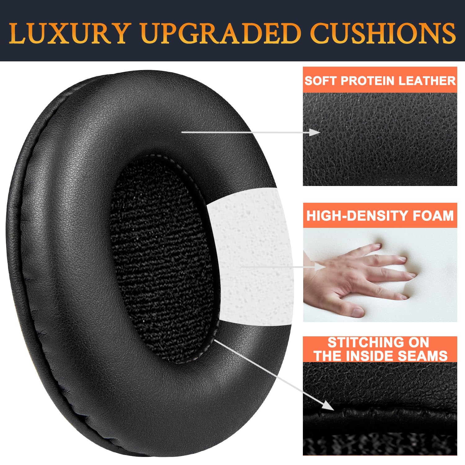 【快適な装着感】より厚くして高密度フォームで作られたイヤーパッドはフィット感がとても良いです。高品質のソフトのプロテインレザーを採用して、パッドが柔らかくて耳触りもいいです。長時間使用時に耳への負担も軽減できて快適に使用できます。