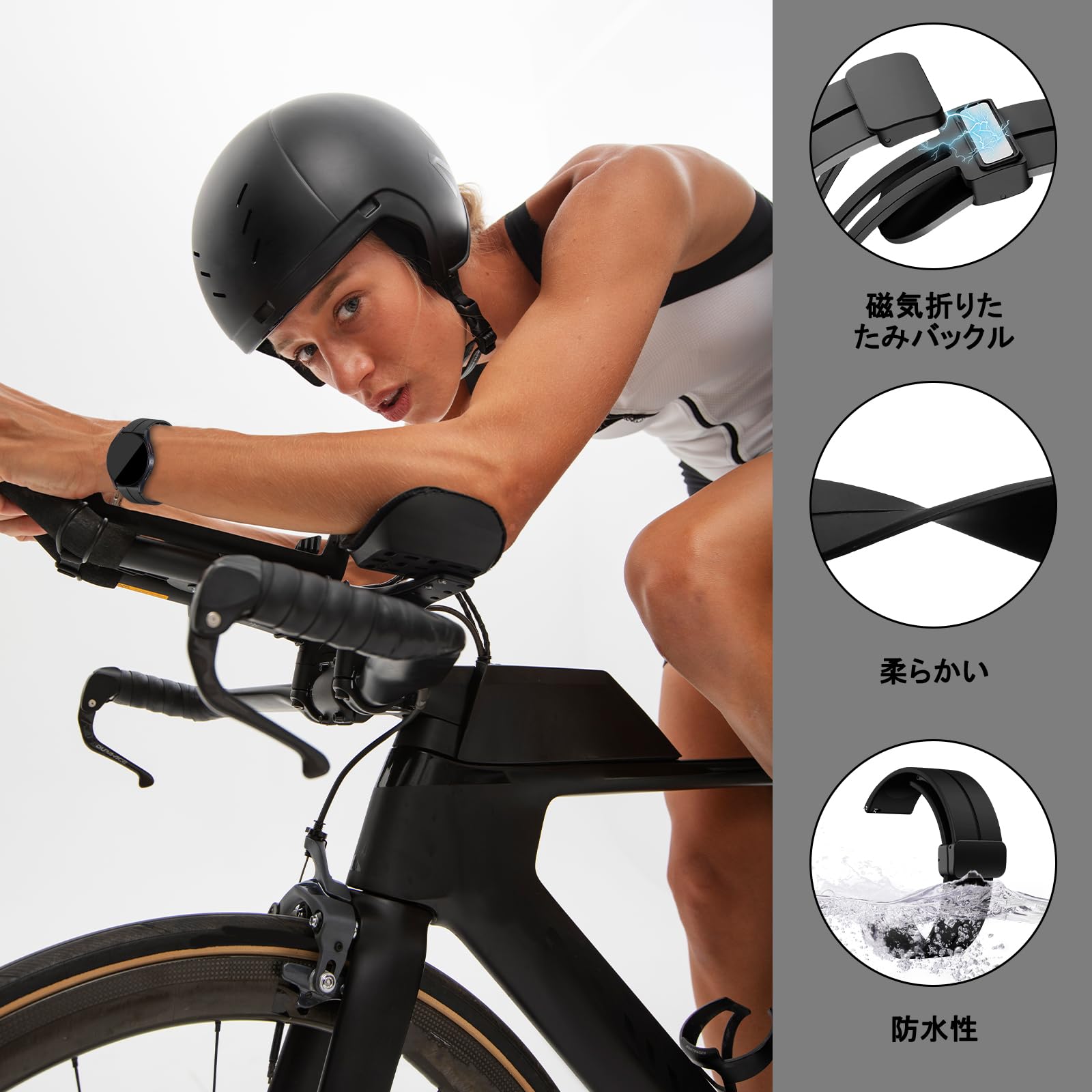 【高品質の素材】高品質の熱可塑性エラストマーシリコーン素材で作られており、素材は非常に柔らかく、軽量で通気性があり、より快適に着用できます。撥水処理が施されており、汗や水に強く、清潔な状態を保ちます。また、取り付けが簡単で、マグネット付きバックルにより簡単に装着・着脱ができます。