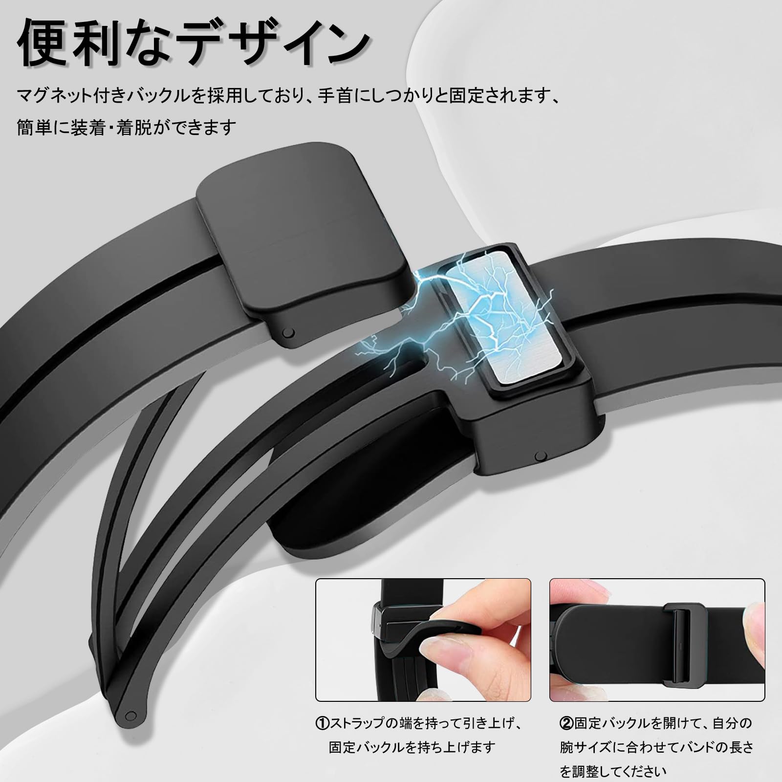 【装着簡単】マグネット付きバックルを採用しており、簡単に装着・着脱ができます。交換バンドのアダプターは高品質なステンレスで作られました、本体に傷付けず、バンドの取り外しと取り付けがスムーズに行えます。