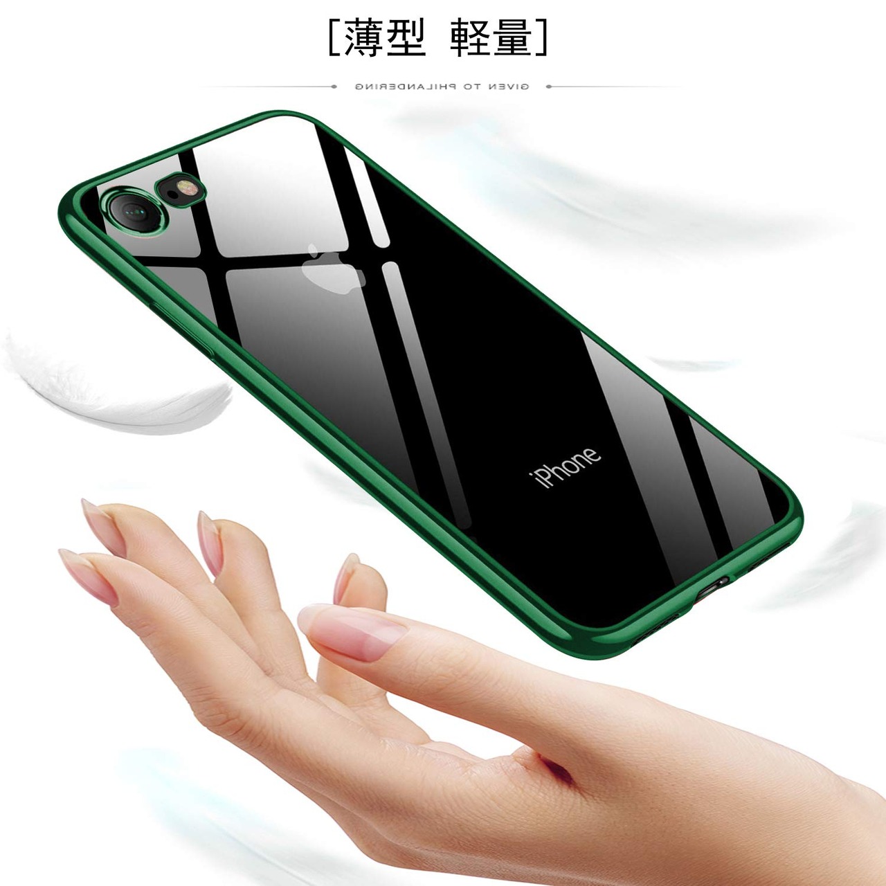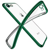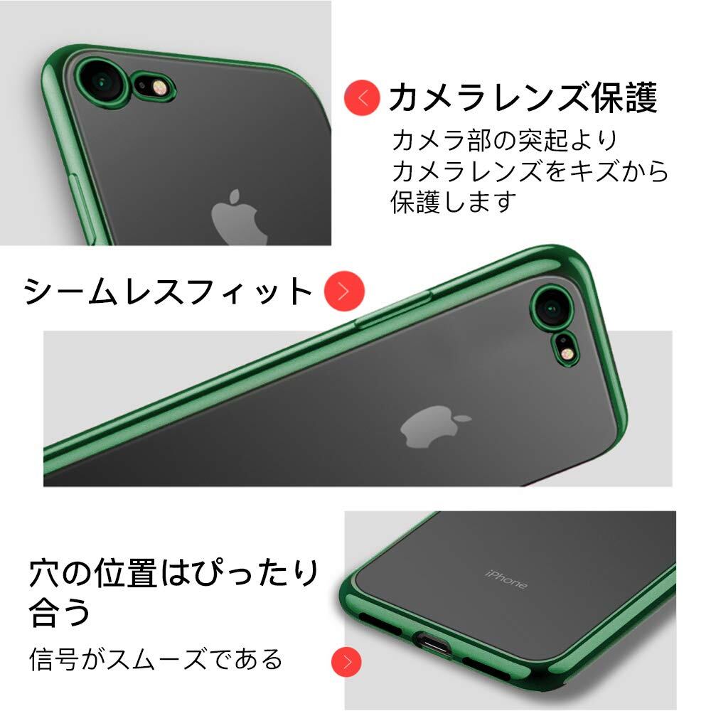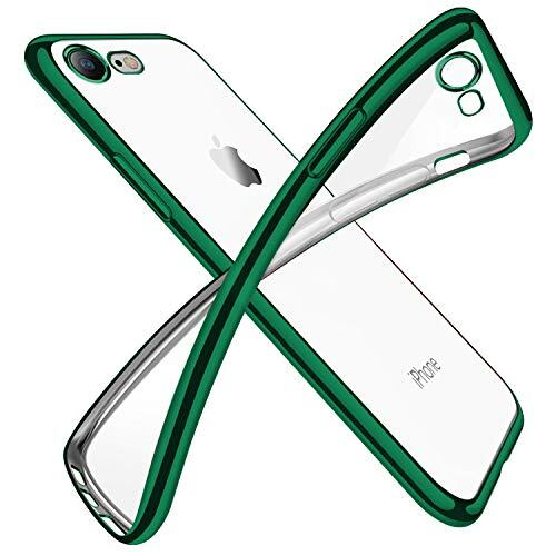 対応 iPhone SE3/SE/8/7 用ケース クリア 透明 tpu シリコン メッキ加工 スリム 薄型 4.7インチ スマホケース 耐衝撃 黄変防止 一体型 人気 携帯カバー ダークグリーン