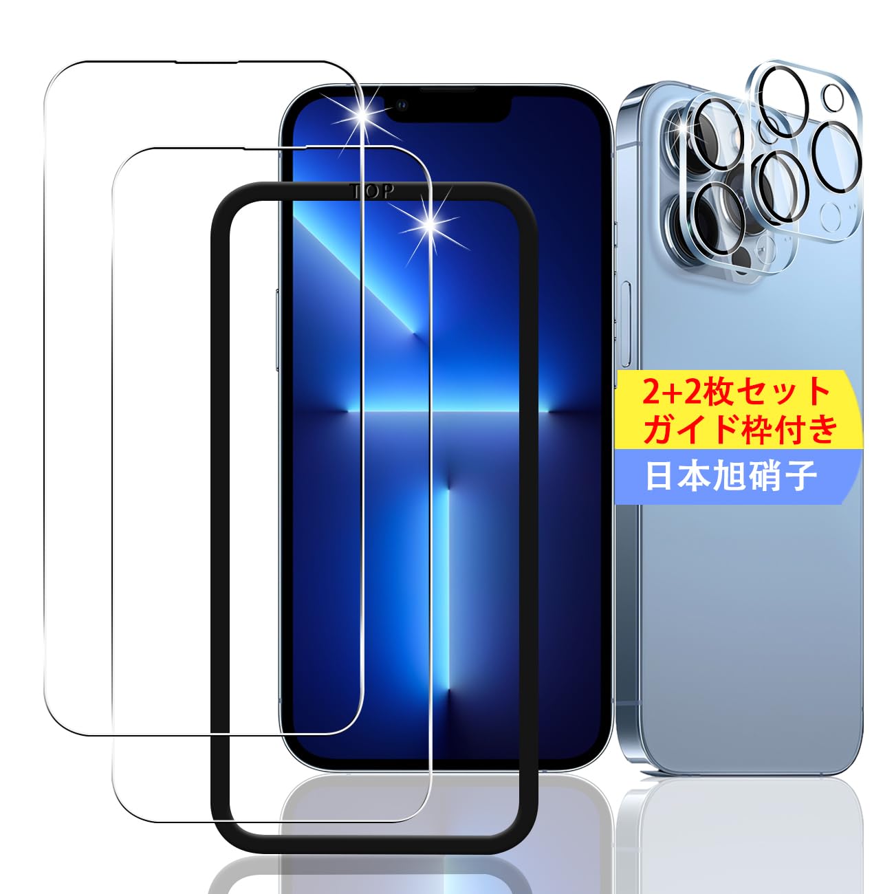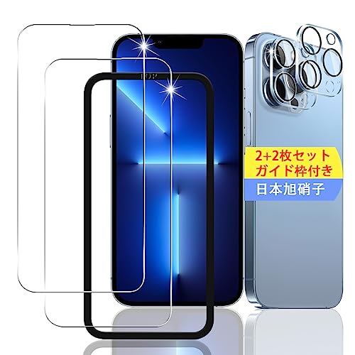 【2+2枚セット】 対応 iPhone 13 Pro ガラスフィルム スマホ 保護フィルム (2枚) + 用 iPhone13 Pro レンズ保護フィルム (2枚) 【日本製素材旭硝子製】 用 アイフォン13 Pro フィルム 強化ガラスフィルム 全面吸着 高透過率、硬度9H、3D Touch対応、飛散防止、指紋・汚れ防止、気泡ゼロ、ラウンドエッジ加工【FAMROLLS正規品】